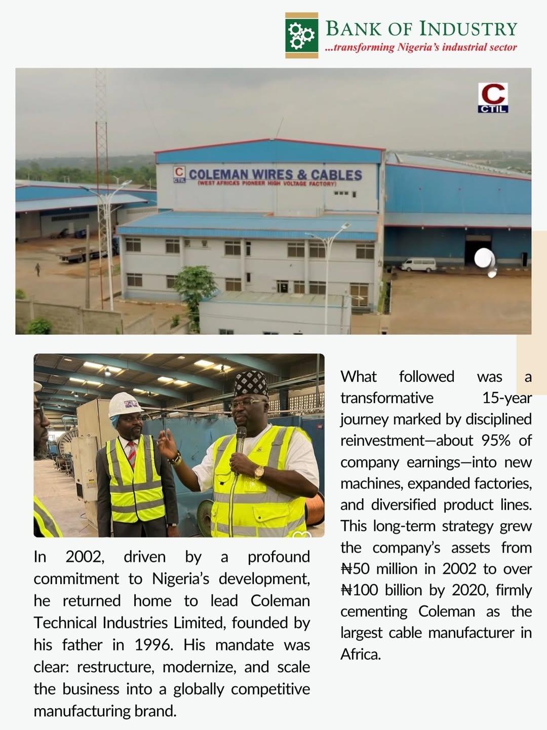 As a longstanding Bank of Industry (BOI) supported enterprise, Coleman exemplifies BOI’s commitment to powering Nigeria’s industrial transformation and enabling businesses that drive economic growth.